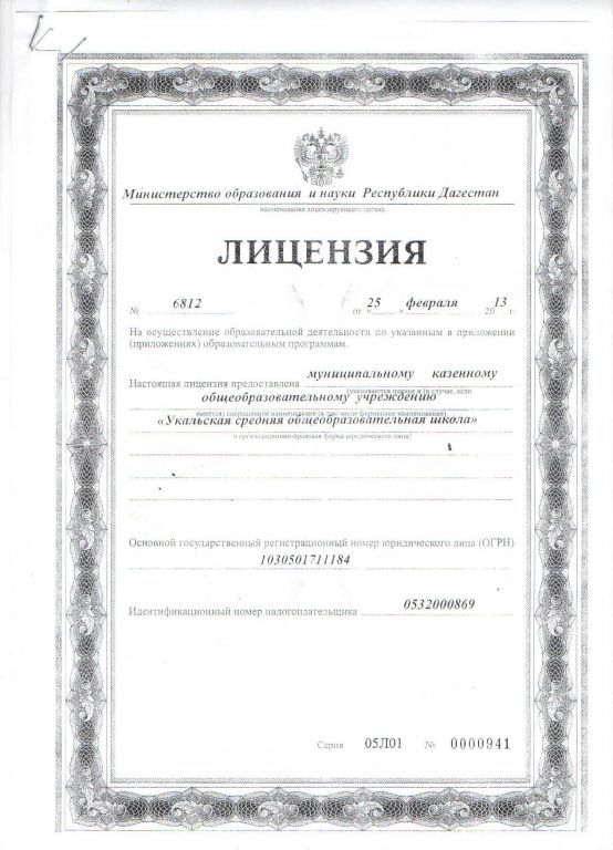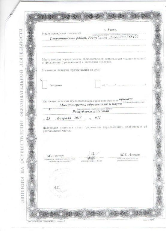 Образовательная деятельность осуществляется по адресу ул. Укальская, 90 Тляратинский район с.Укал РД